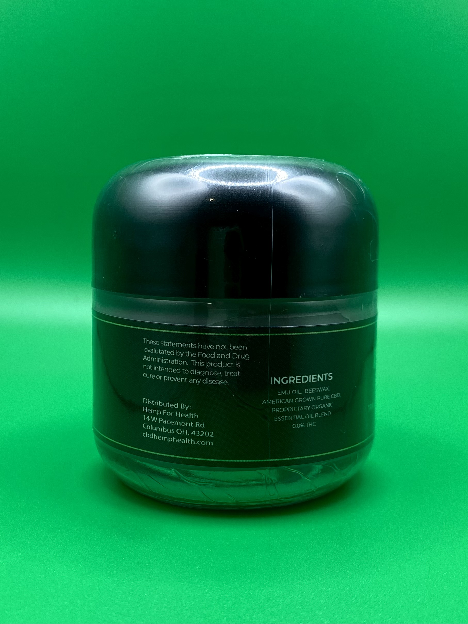 Emu oil, beeswax, American grown pure CBD, proprietary organic essential oil blend. 0.0% THC.