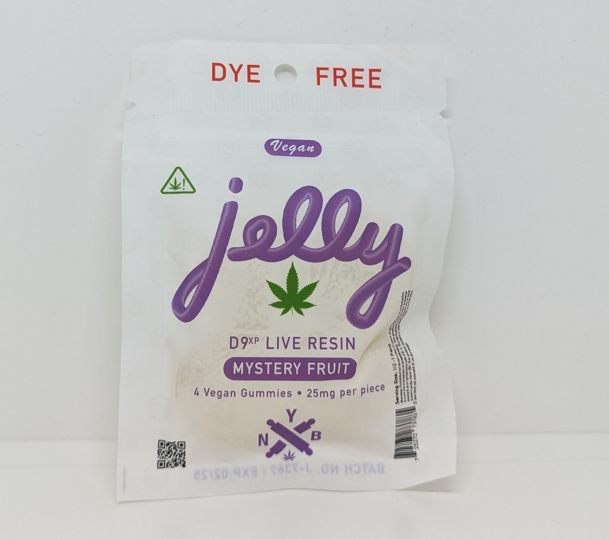 Not Your Bakery outdid themselves with these gummies! Super potent at 25mg Live Resin Delta 9 per gummy. These mystery fruit flavored gummies are totally dye-free and taste great too. 4 gummies per package.