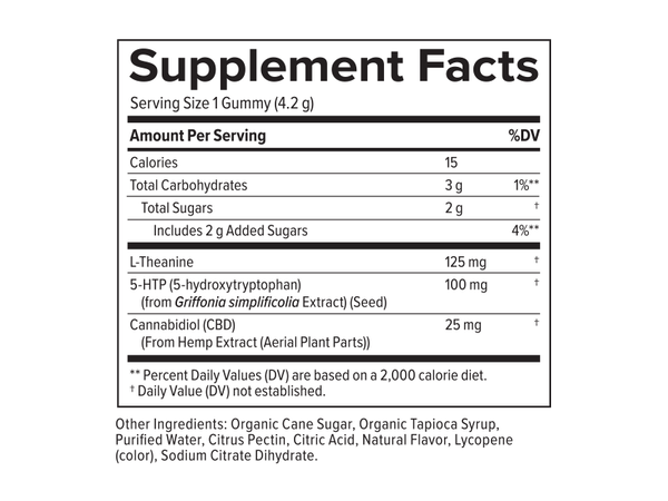 The Extra Support Calm formula features clinically researched active ingredients. We include 125 mg of L-theanine per serving. This amino acid is naturally found in green tea. It regulates neurotransmitter signaling to promote a "zen-like" state. We also add 100 mg of 5-HTP to every gummy. 5-HTP is a direct precursor to serotonin. Healthy serotonin levels are vital for a positive mood. Together, these ingredients support a healthy response to stressors. This blend offers relaxation without any intoxication.