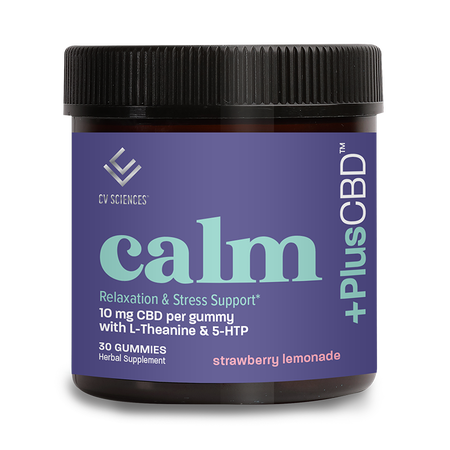 +PlusCBD Calm Gummies help ease tension, soothe irritability, and contribute to a greater sense of contentment. We combined 10 mg of CBD from award-winning hemp extract with clinically researched ingredients like L-Theanine and 5-HTP to support a healthy stress response. These strawberry lemonade gummies are organically sweetened, vegan, and non-GMO for a clean daily reset.