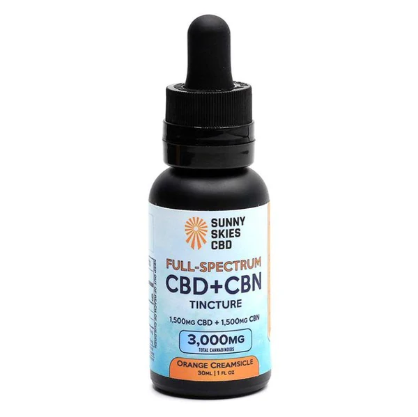 Experience the ultimate entourage effect with Sunny Skies CBD Full Spectrum CBD+CBN Tinctures. This potent 1:1 formula offers superior absorption and non-psychotropic relief in natural or delicious Orange Creamsicle. Pure, effective, and lab-tested.
